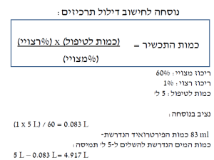 חשב את כמות הפירטרואיד הנדרשת ואת כמות המים הנדרשת