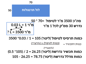 (0.5 * 15 ליטר) \ 70 = 0.107 ליטר תכשיר (107 מ"ל)