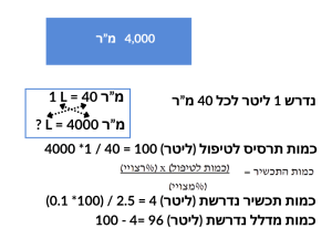 (1.05 * 1200 מ"ל) \ 40 = 31.5 מ"ל תכשיר (0.0315 ליטר)