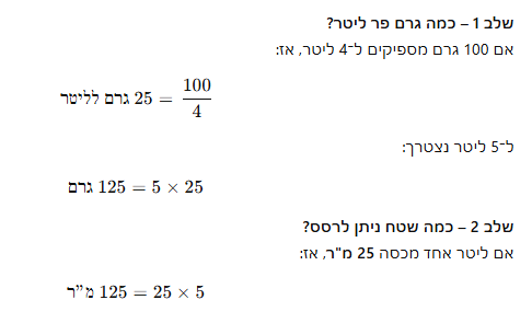 כמה גרם תכשיר נדרש להכנת 5 ליטר תרסיס וכמה מ"ר ניתן לרסס עם התרסיס שהכנת?