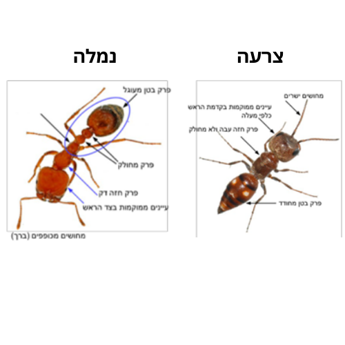 כיצד תבחין בין צרעה לא מכונפת לנמלה?